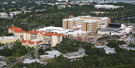 Palms of Pasadena Hospital: Install a new cooling tower, retrofit a tower sump equalizer pipe to all three towers. Replace a Trane screw chiller with a new York centrifugal chiller.